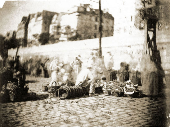 Quelle Charles Nègre: Äpfelverkäufer am Hafen beim Rathaus, 1851, 15,4 x 20,8 cm, Salzpapier-Abzug von einem Wachspapier-Negativ (aus: Françoise Heilbrun, Charles Nègre. 1820 – 1880. Das photographische Werk, München: Schirmer/Mosel, 1988, S. 117)